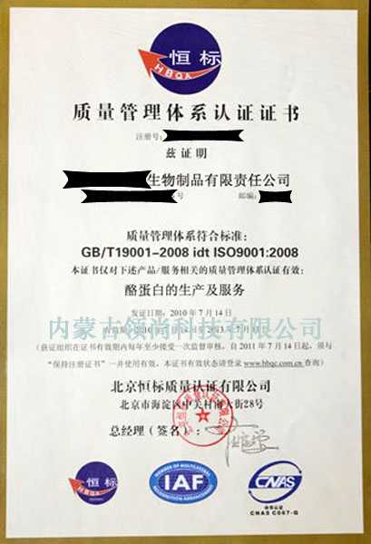 ISO9001質(zhì)量管理體系認證證書